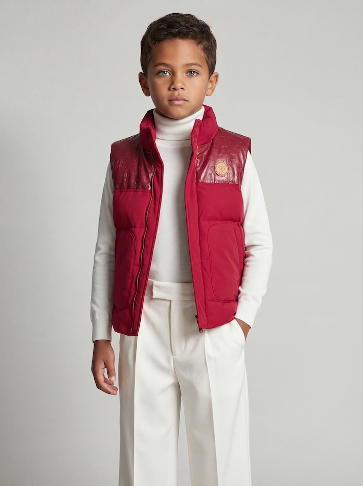 The Heritage Gilet for children embodies the essence of timeless layering, crafted to bridge generations with understated warmth. This quilted gilet combines contemporary function with refined aesthetics, featuring a stand collar and full-zip fastening for effortless styling versatility. Dual-front patch pockets provide practical storage while maintaining clean lines, and the lightweight insulation ensures comfort across seasons. A heritage-inspired crest badge sits proudly at the chest, marking this piece as more than outerwear—it's a symbol of connection between father and son, embodying warmth both literal and emotional. When worn together, it creates a perfect matching moment.