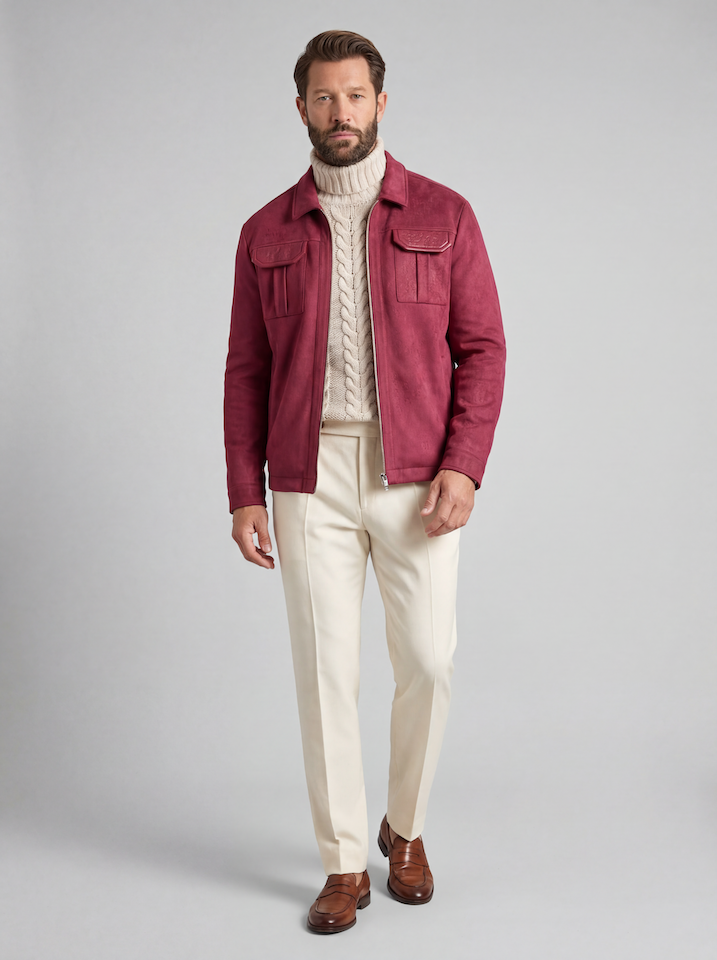 La chaqueta de ante Atelier eleva la sofisticación cotidiana mediante una artesanía refinada y un tacto lujoso. Confeccionada con tejido de ante de primera calidad, esta chaqueta fusiona un diseño contemporáneo con un encanto atemporal: una prenda diseñada para ser compartida entre generaciones. Su silueta relajada ofrece una cómoda versatilidad, mientras que el cuello clásico y el cierre de cremallera completa ofrecen opciones de estilo sin esfuerzo. Los dos bolsillos de parche en el pecho con detalles de cuero vegano añaden elegancia funcional, complementados con dos bolsillos de parche inferiores para un práctico almacenamiento. Una sutil costura horizontal en la parte trasera de los hombros aporta profundidad y estructura, mientras que los refinados herrajes en los puños garantizan una meticulosa atención al detalle. La textura de ante ofrece una sofisticación discreta que envejece maravillosamente con el tiempo. Una declaración de serena confianza y tradición.